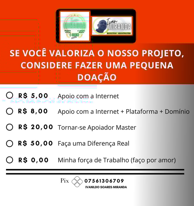 Empenho-me continuamente para manter este projeto ativo, acessível e totalmente gratuito. Seu apoio é fundamental para que possamos seguir ampliando nosso acervo e disponibilizando cada vez mais títulos e e-books à comunidade. Caso valorize esta iniciativa social, considere contribuir com uma doação voluntária.